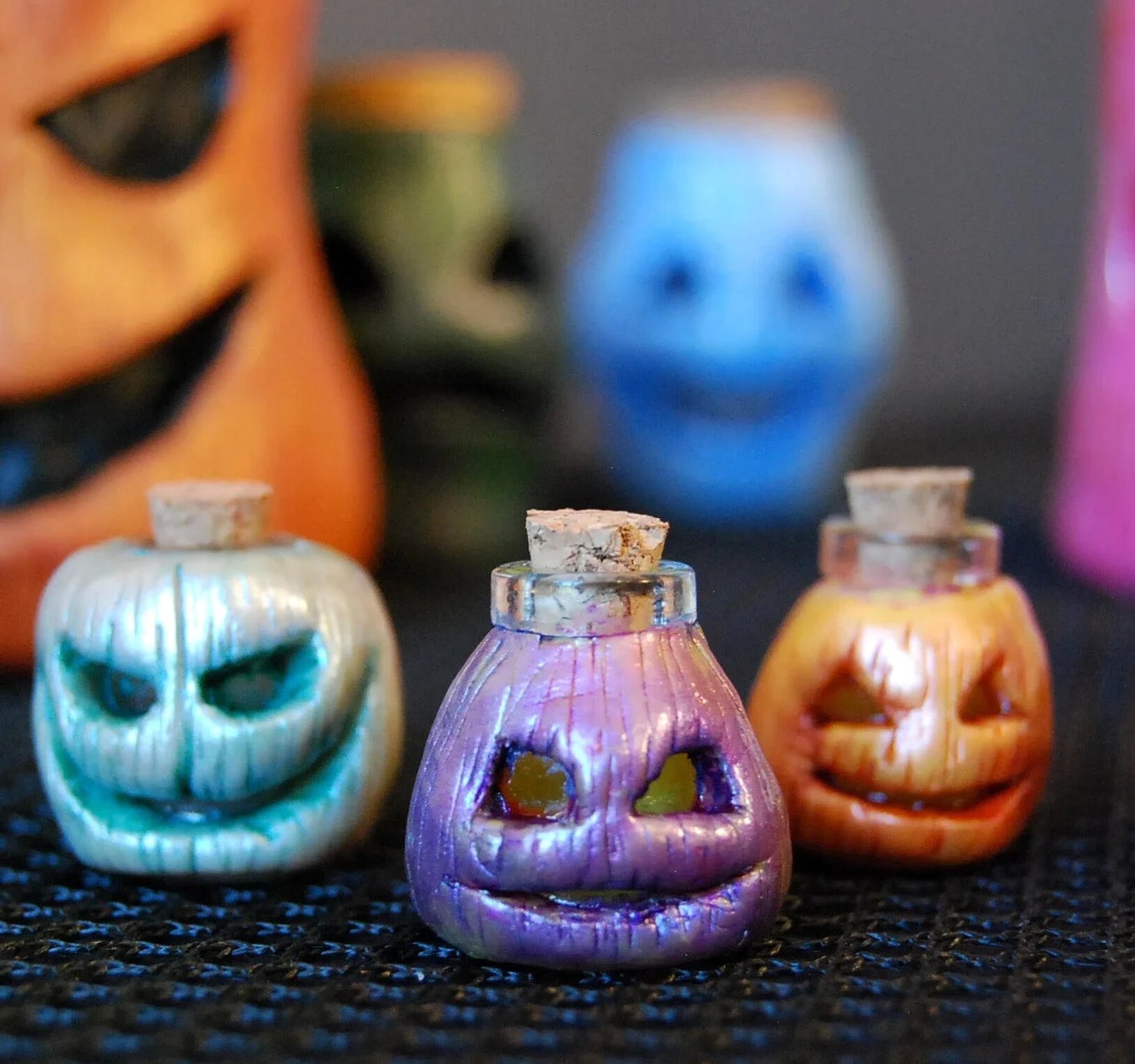 Creepy cute pumpkin vessels and other polymer clay creations.